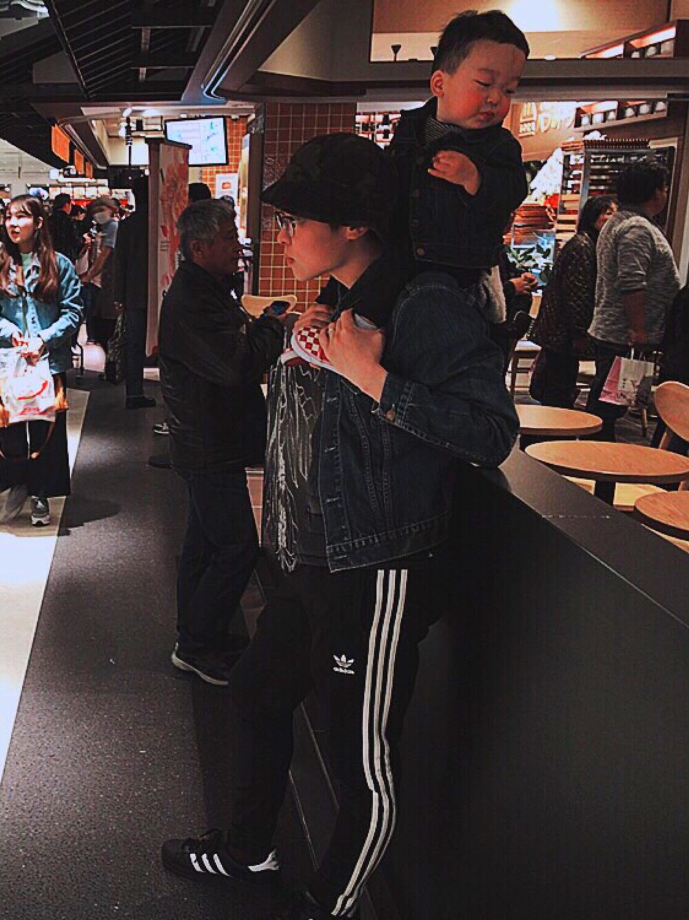 週末は暖かかった事もあり、息子とリンクコーデ。