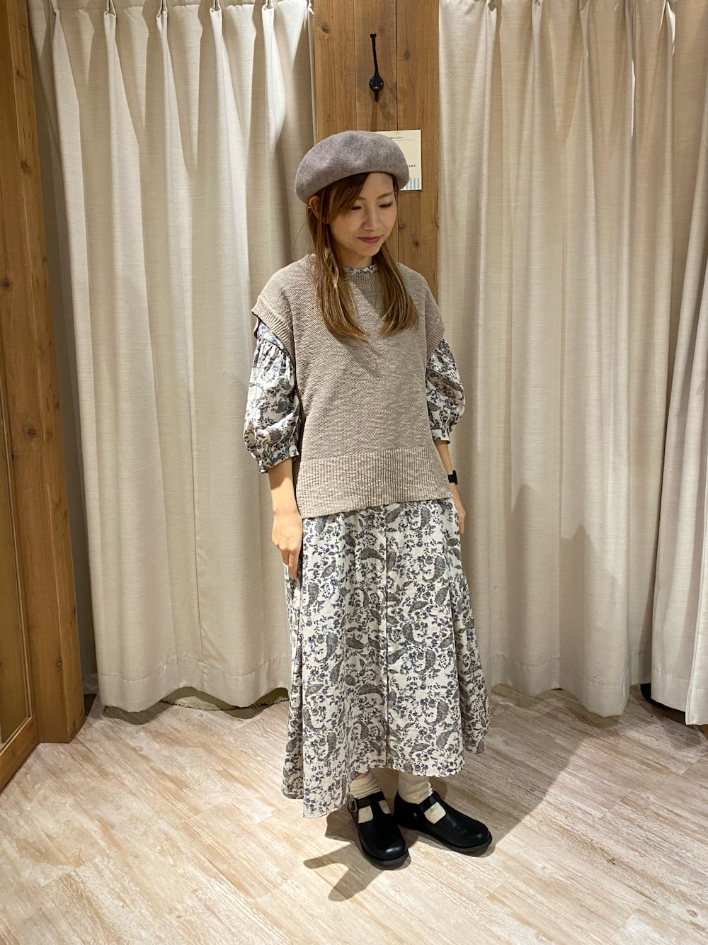 カノコベスト着回し〜その1〜 ワンピースとベストで ガーリースタイルに☆ 淡い色味で統一して柔らかい印象にしました。