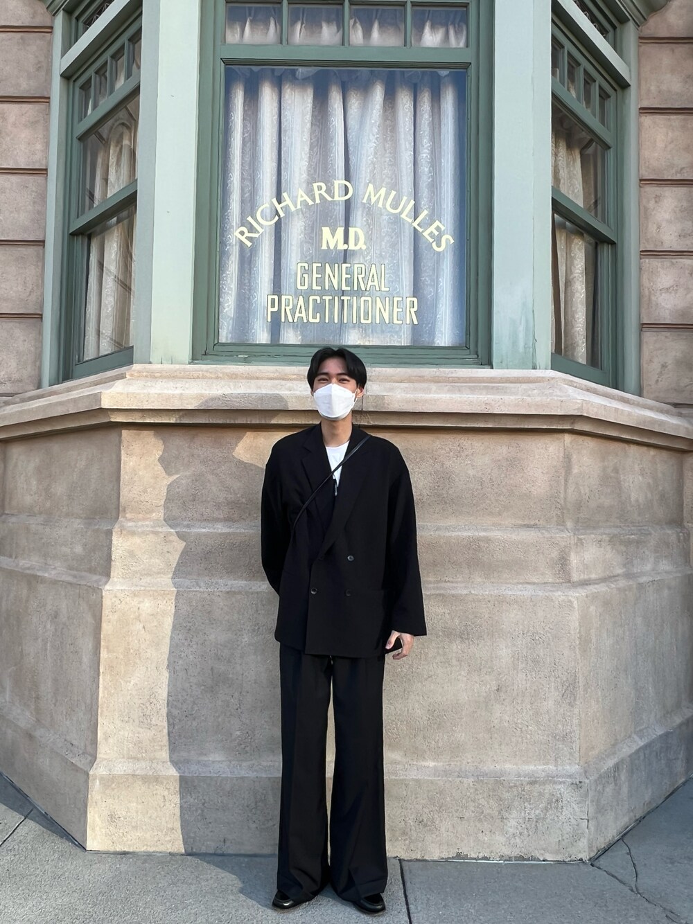 soerteセットアップです!!✨✨ ジャケットは汎用性がとても高いです! パンツの方は丈が長くなっており、足長効果抜群です☆ 彼女とのモノトーンコーデで、お出かけしました!