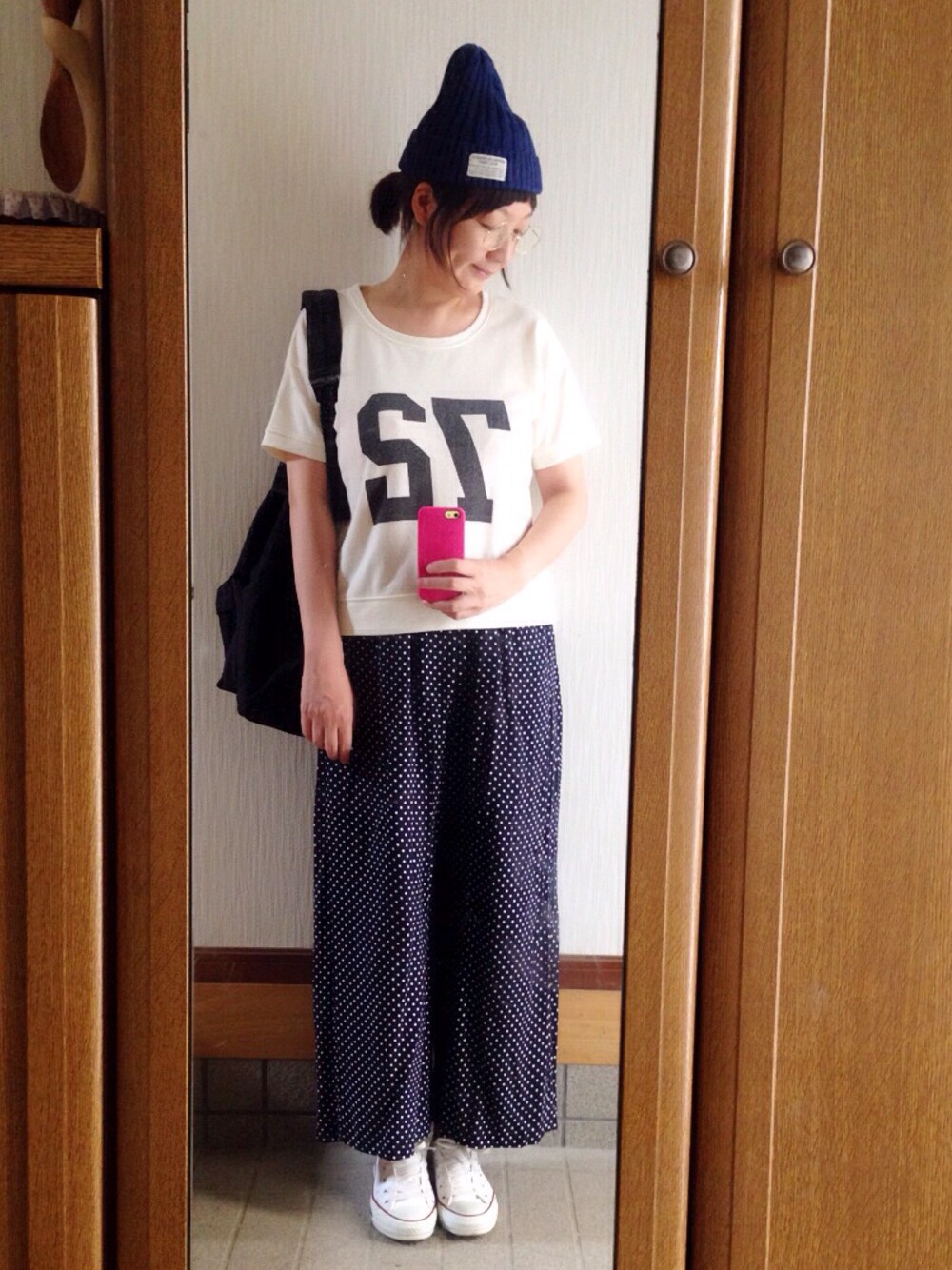 ニット帽○しまむら ガウチョ○古着 暑い…。 そろそろ運動したいな。 おなかがやばいな。