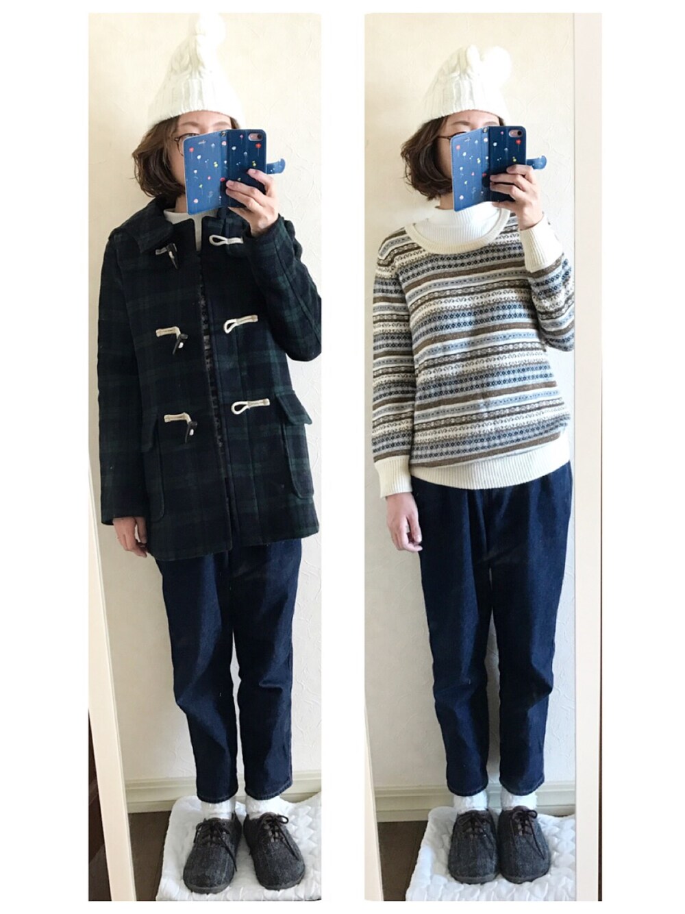 ニット帽 誕プレ ハイネックニット UNIQLO ダッフルコート UNIQLO マムジーンズ gu 靴 しまむら