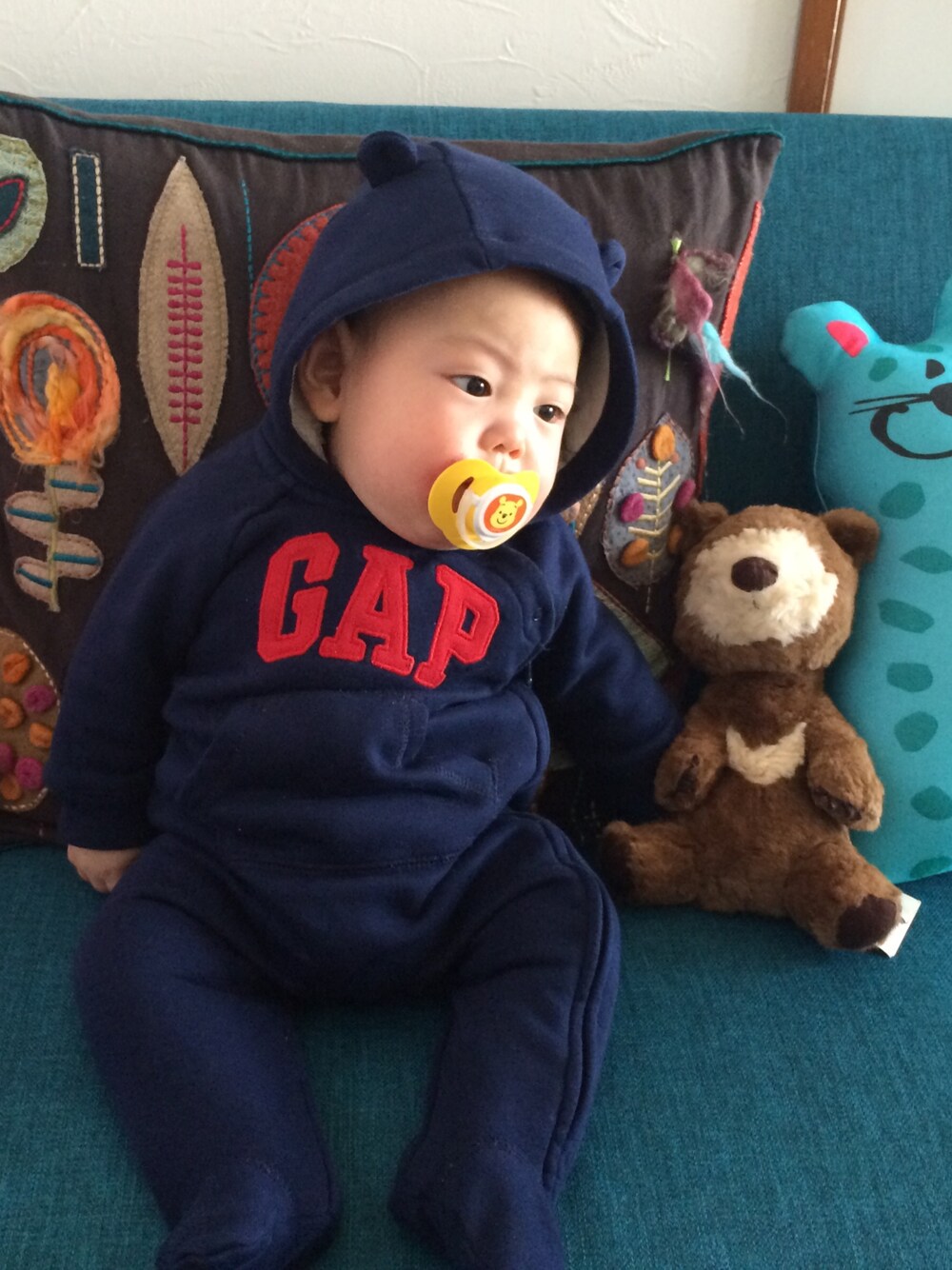 今日は少し寒いので久々の出番♡ 買った時はまだ生後2ヶ月でぶかぶかやからアウターにして使っていたのに… あっとゆー間にぴったり‼︎‼︎‼︎ でも今日が着納めかなー⁇? お世話になりました♡
