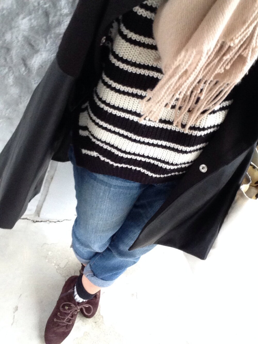 いつかの ootd 🎨💕 寒すぎて、ズボン、ニット、マフラー、コート完全防備です(^_^)☆ コート:forever21 ニット:rio ズボン:honeys マフラー:honeys シンプルにあったかいファッションです🎶 やっぱり寒い季節はモノトーンなりがちですね😰
