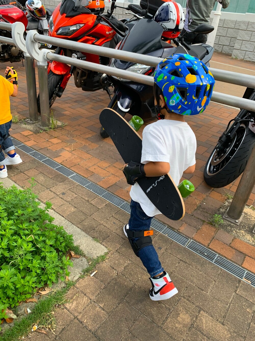 自分チョイスのヘルメット⛑ こうゆうのさ、子供に選ばすと親の意に反したの選ぶよね。 無地のマットなやつがよかったよね、親。 柄のテカテカのやつ持ってくるよね、子。