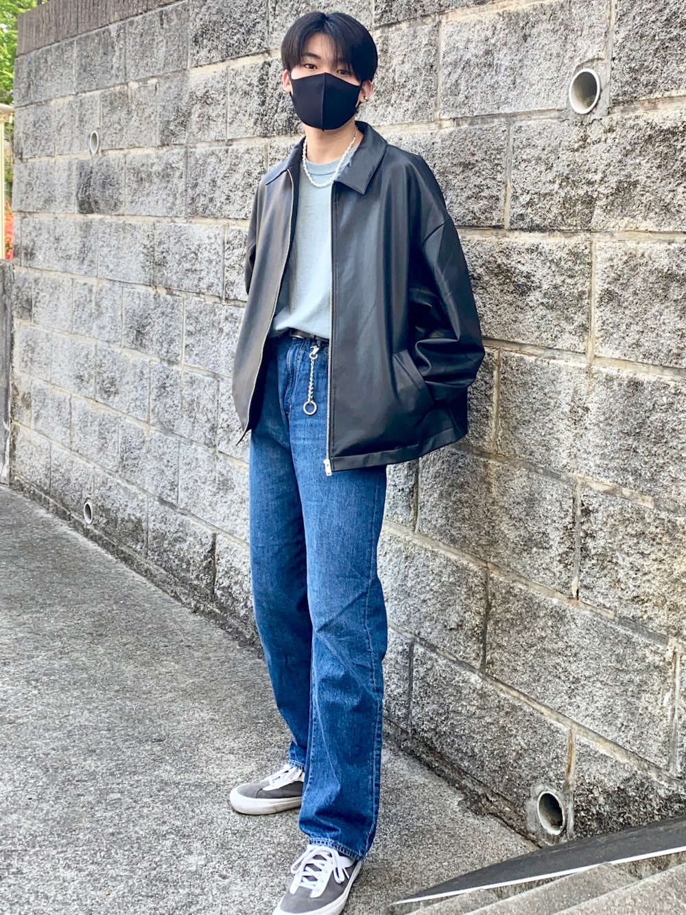ご覧いただきありがとうございます! ・青の同系色で合わせてアウターにレザーを持ってきてクールな印象に😎