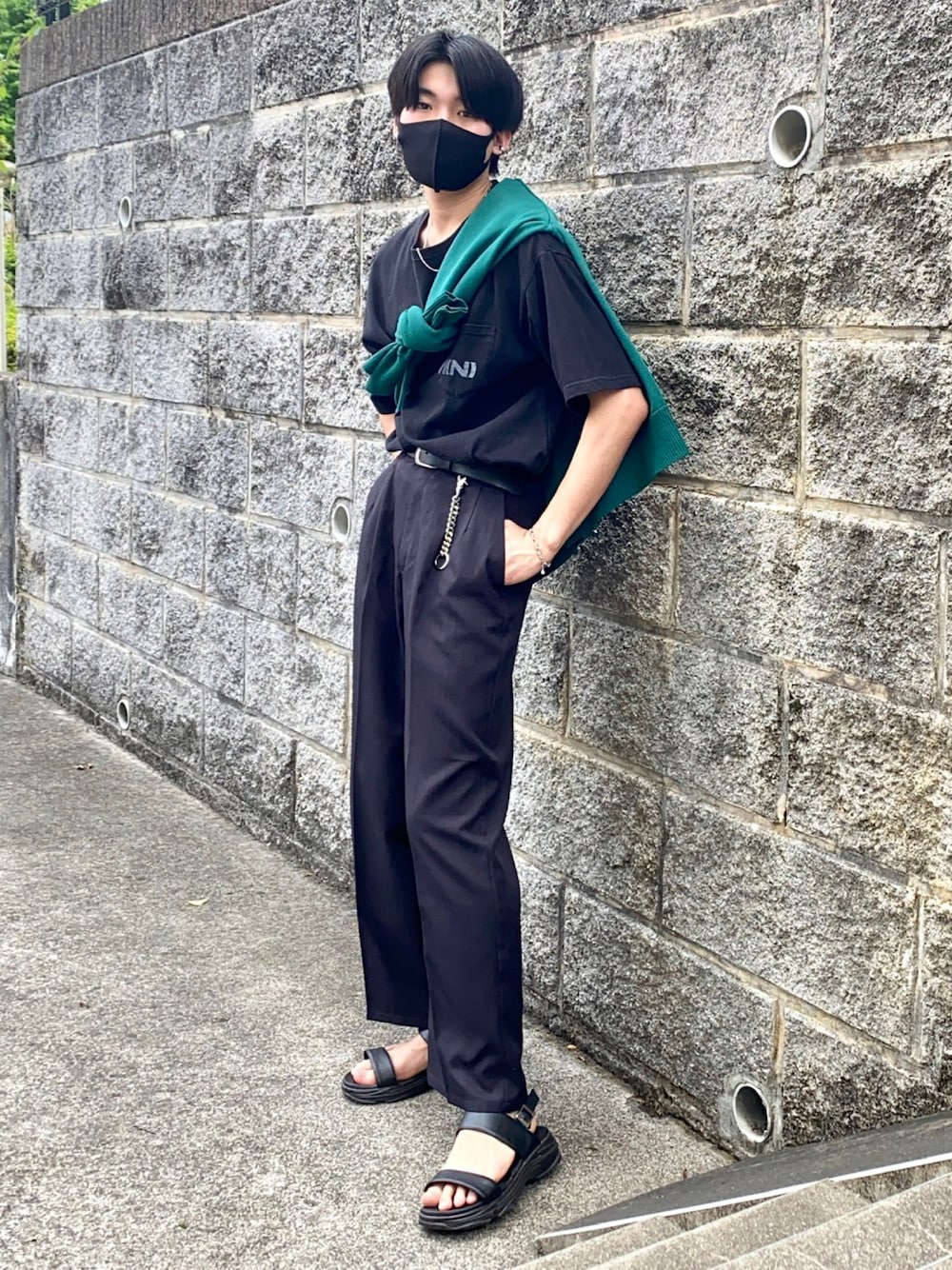 ご覧いただきありがとうございます! ・黒ベースにグリーンをアクセントにした夏のモードコーデ