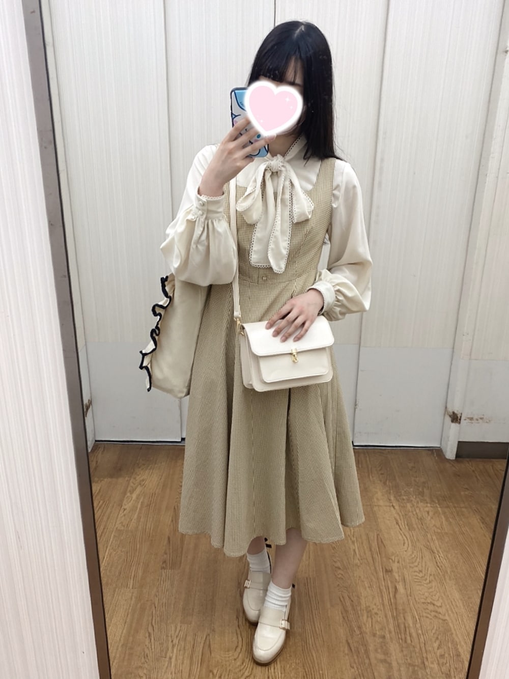 きょうのふく🧏🏻♀️🔖 .· 今日も淡色コーデ! 足出したくないけど、ガーリーに着たい!って時はFi.n.tのジャンスカが大活躍するっ ̫ -⸝⸝˘♡ バッグも靴も白でまとめてみたよ〜! お気に入り⺣̤̬♥