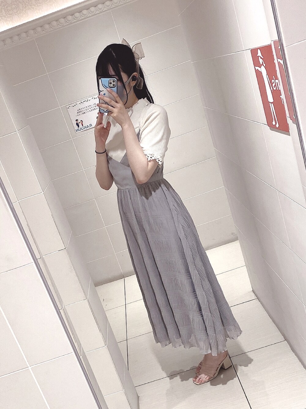 きょうのふく🧏🏻♀️🥛 SALEで安くなってたAnMILLEのワンピース?がめっかなのだ😢🎀 夏近いし清楚っぽくしたよ〜〜! 今年の夏はクリアサンダルがマストですね🌺🌴🏖