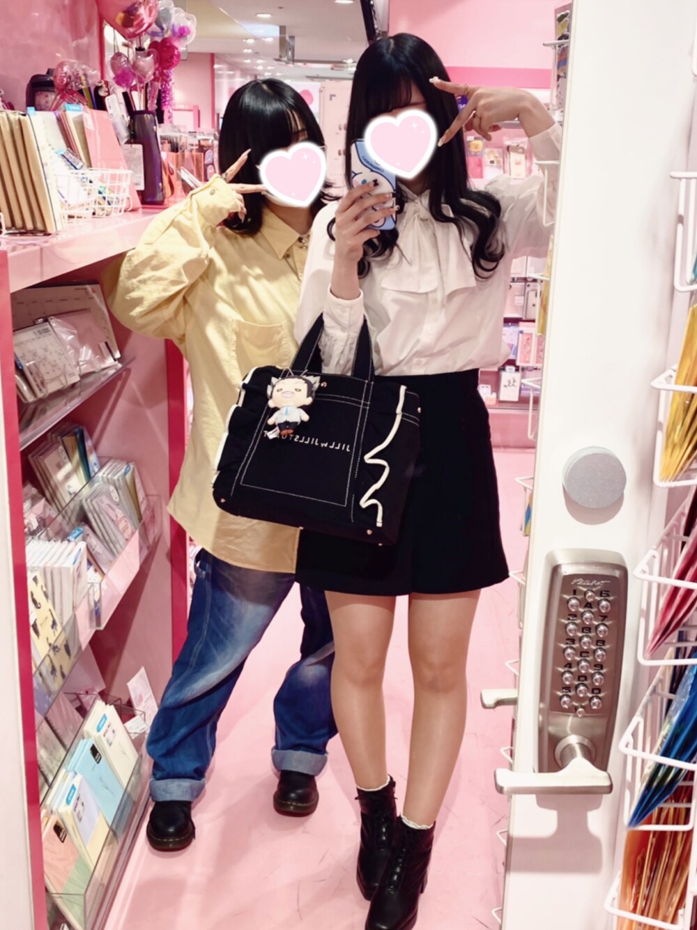 きょうのふく🧏🏻♀️🖤 友達と撮ったやつでごめんなさい🙏 フレンチガーリーしたよ🎶❤︎ このブラウスかわいいけどアイロンがけ鬼面倒いからリボンついてるブラウスはツルツル素材買うのがいいね、うん。