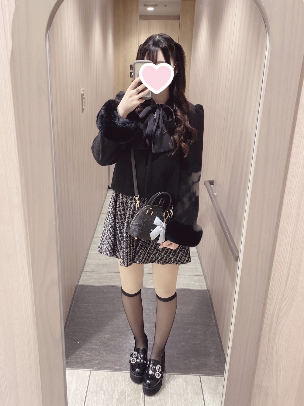 きょうのふく🧏🏻♀️🎶 ブラック量産型コーデ( ̳- ·̫ - ̳ˆ )◞❤︎ 黒ストッキング脚やせ効果凄すぎ!