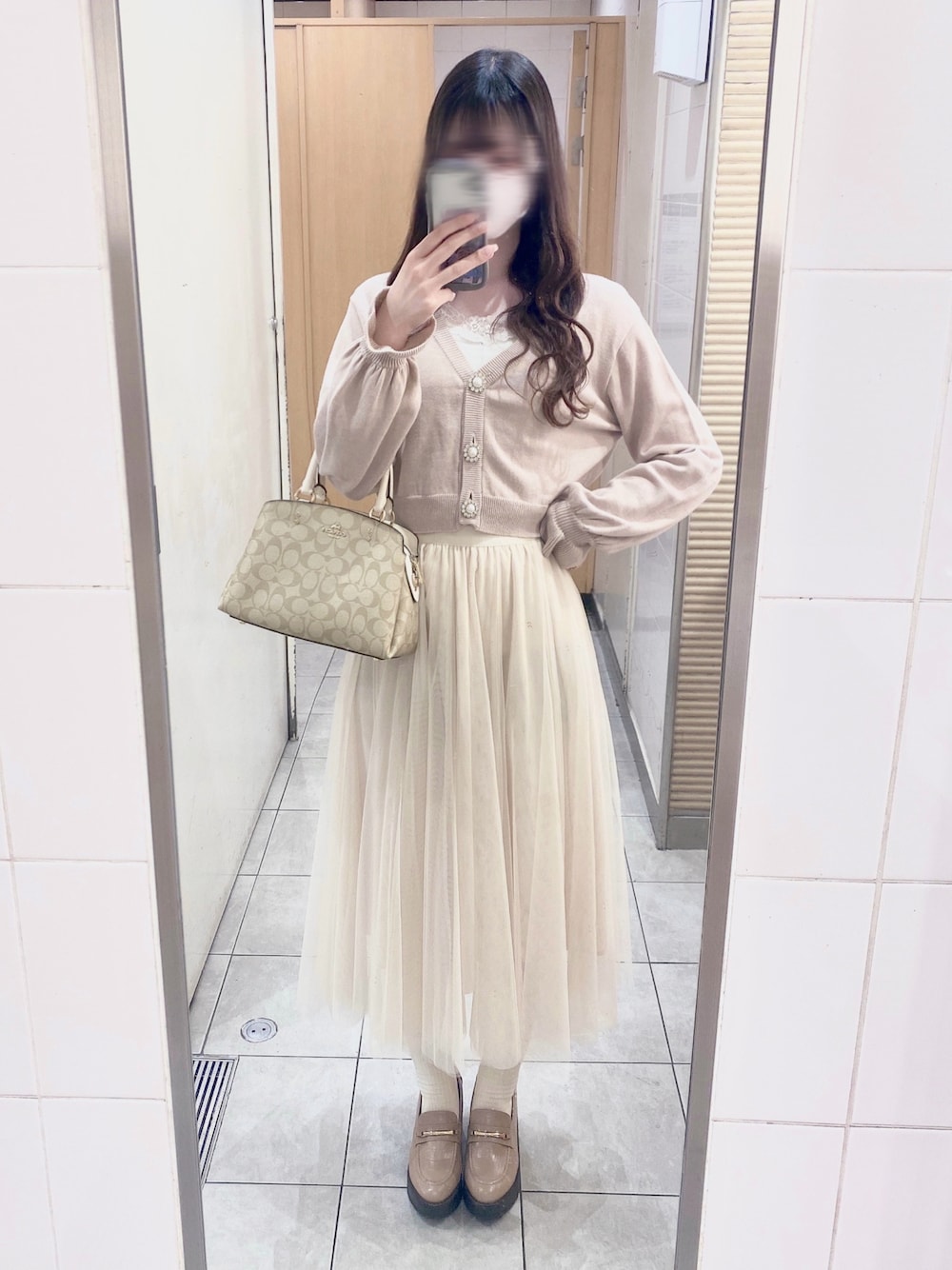 きょうのふく お花見コーデ🌸 チュールスカートとピンクカーディガンの組み合わせ可愛すぎゆ꒰ᐡ´т ‧̫ т ̀ ᐡ꒱🐾♡