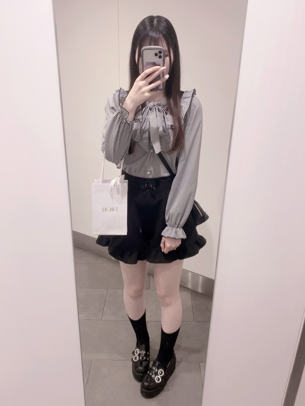 いつかのふく🧏🏻♀️💞 量産型コーデです!リボンブラウスは安定の可愛さだよね🥺 GUの靴下足細く見えるからお気に入り🧦