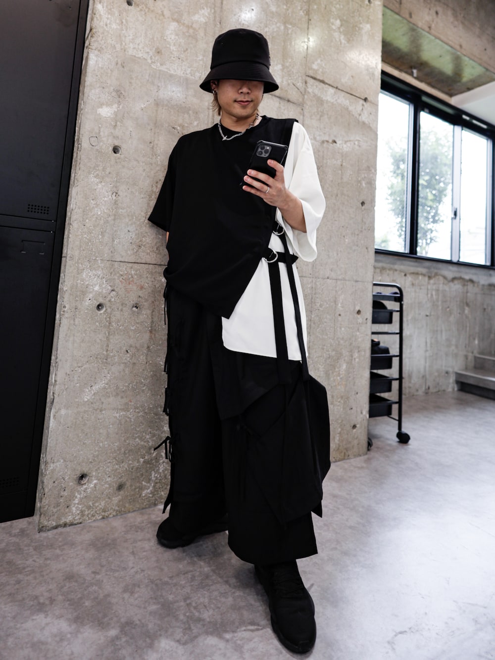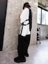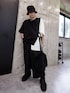 オーバーサイズコーデ ブラックとレイヤースタイルにワンポイントのホワイトが良き 162cmでもスタイル良く着こなせます