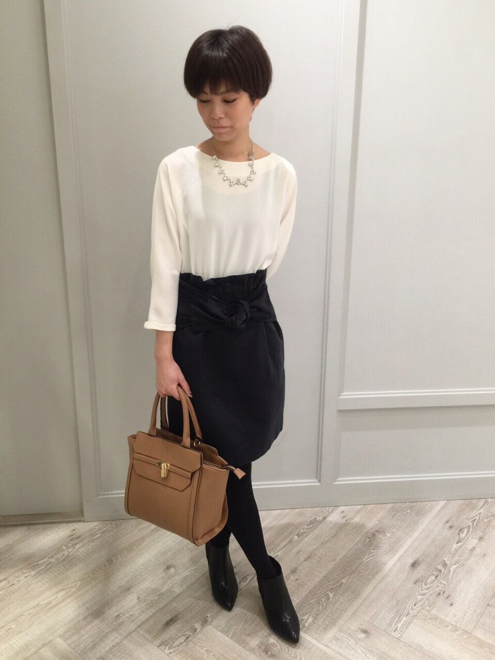 ブラウスとスカートを着ているように見えて実はワンピース! 1枚できちんと感が出せるワンピースは今の季節に重宝します☆