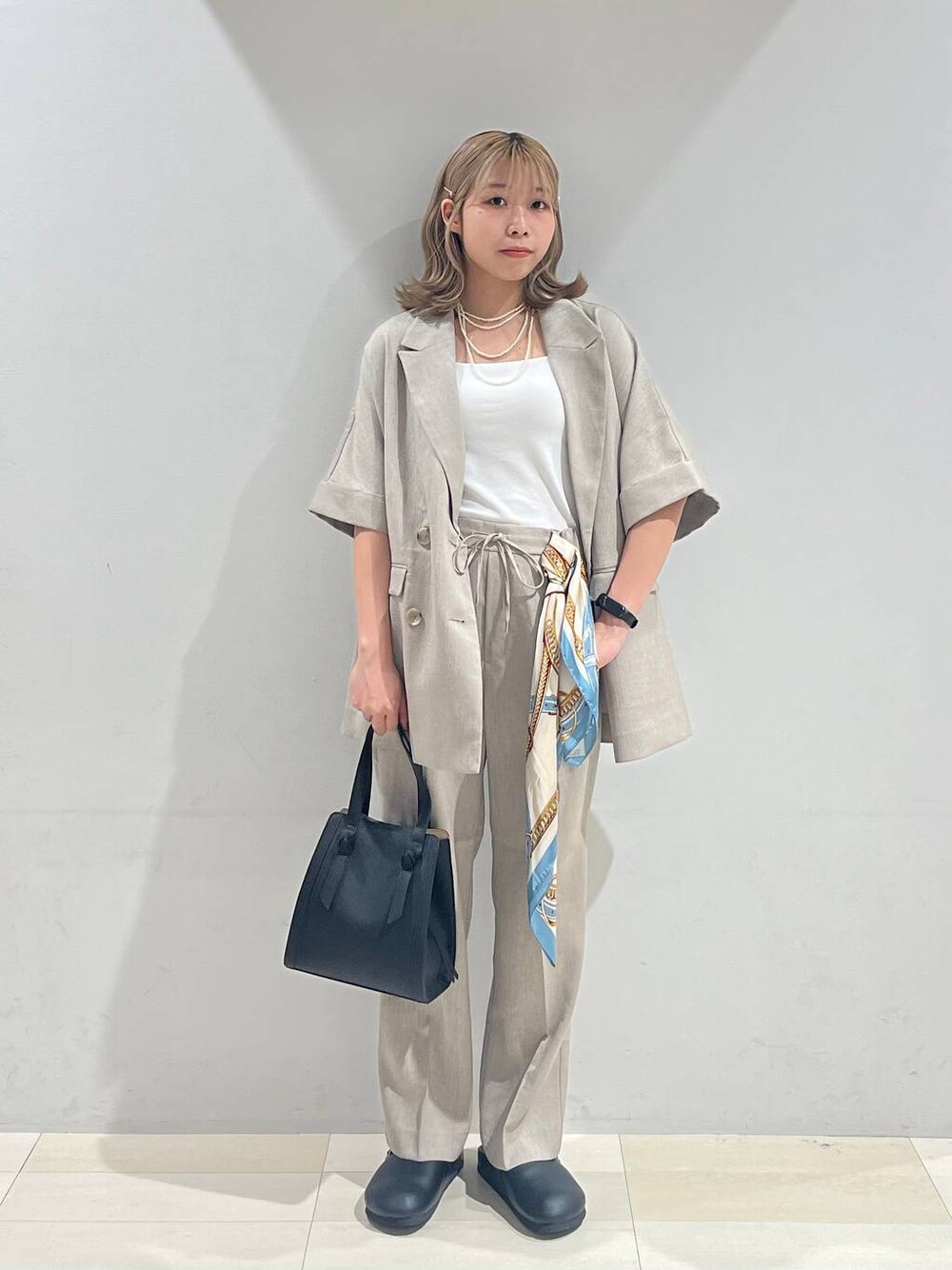 ご覧頂きありがとうございます🍥 ⭐各アイテムのおすすめポイント  ̄ ̄ ̄ ̄ ̄ ̄ ̄ ̄ ̄ ̄ ̄ ̄ ̄ ̄ ̄ ̄ ̄ 【ジャケット】Mサイズ ゆるっと綺麗みえする万能半袖ジャケット! リネンライクな素材で熱が籠らないので真夏でも安心✨ リアルバイアイテムですが、私服ではノースリーブの羽織に着たり、着回し抜群激推しアイテムです❤️🔥 【パンツ】Mサイズ ウエストはゴムと紐のイージーパンツで、ストレートの形なので見た目キレイめ、実は超楽ちん❕❕❕ 紐はウエスト前でリボン結びを見せるのがお洒落🎶 低身長の私もMサイズで長すぎない丈で履けました👍🏻✨ から他投稿も見られますので是非ご覧下さい!フォローして次投稿もお待ちいただけるととても励みになります😌❕ 同じ店舗のスタッフ⬇️ FKD宇都宮 たかな