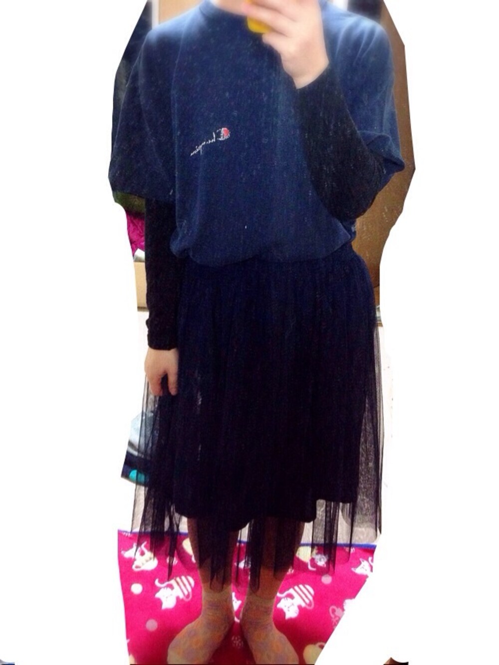トップスは古着♪ チャンピオンだよ〜 鏡が汚いね(笑)