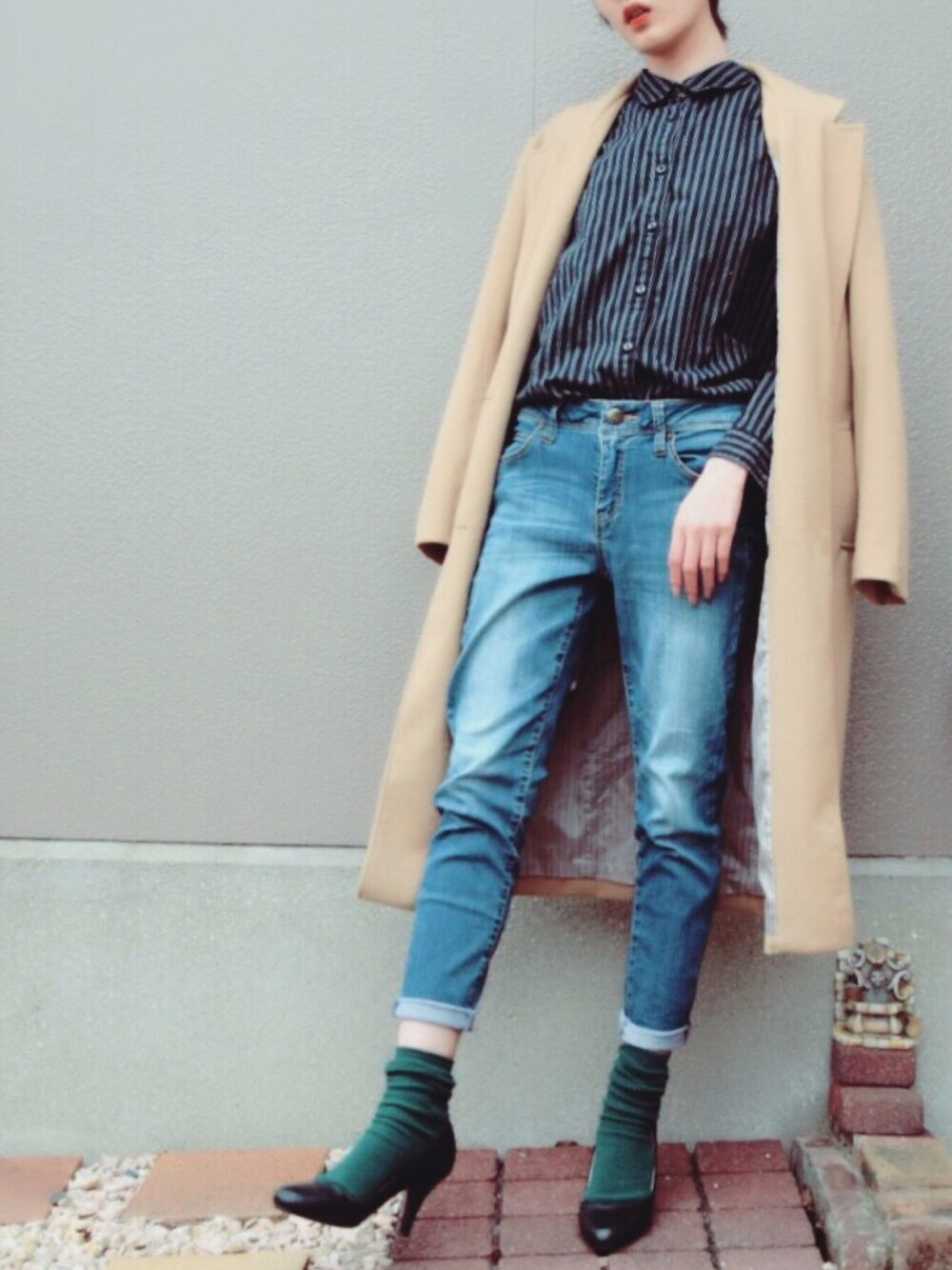 見ていただきありがとうございます!🙇🏻 テーパードパンツとカラーソックスの組み合わせお気に入り❣ ソックスはユニクロのメンズものなのでデカいですが、カラーバリエーションが可愛くて重宝してます👏🏻