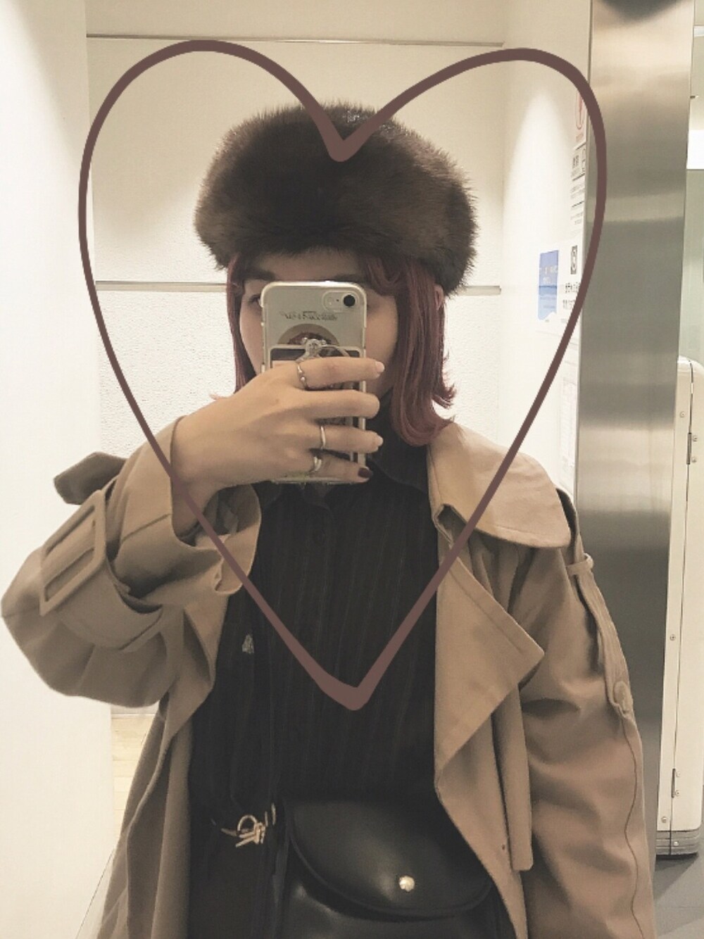 初めてロシアン帽被りました🍁 中のブラウンカラーのブラウスは 高田馬場にあるお店で1200円でした…!🐶安い ショルダーバッグはshoplistで💰