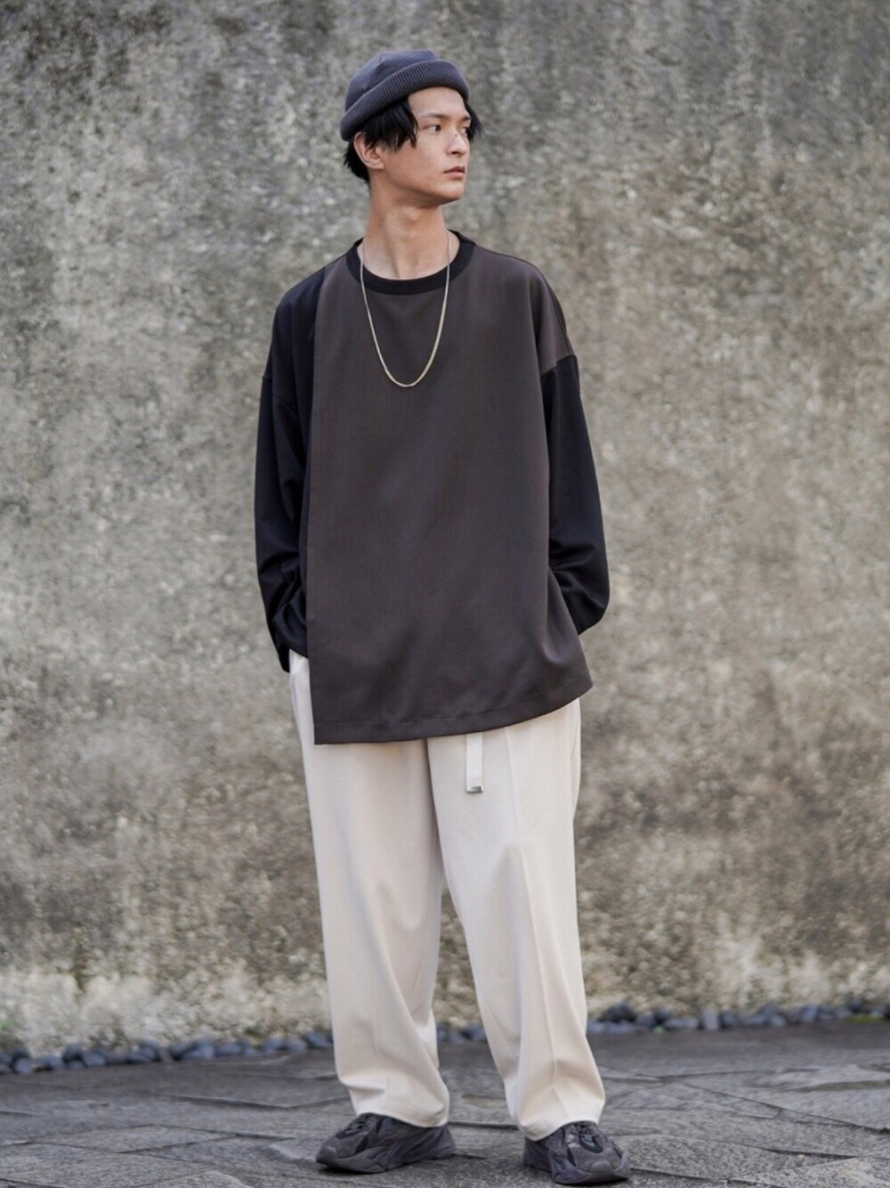 - くすみカラー ゆるコーデ -⠀ ⠀ ⬛︎着用サイズ ・トップス → Lサイズ ・パンツ → Mサイズ⠀ ※身長174cm ⠀ ⬛︎コーディネートポイント 流行りの《くすみカラー》アイテムを使って低明度なトーンまとめてます。 トップスとパンツをどちらもビッグシルエットのアイテムで合わせて、全体的にかなりゆるいサイズ感に。 無地でシンプルだけど、トップスの切り替えデザインや、色合わせに個性を出して、他と差の付くコーデ。 ______________________ ⬛︎ヒトコト 今日は25°!涼しい! このコーデがちょうどいい感じ。 ______________________ この投稿が少しでも参考になったと思ったら、ぜひ【いいね】を。違うコーデも見たいと思った方は【フォロー】をお願いします♪⠀ ⠀ ________________________________ あと、個人のInstagramもやってます。 WEARにアップしてない写真や、私服コーデなどを投稿してるので @kure_wear で、ぜひ検索してみてください!