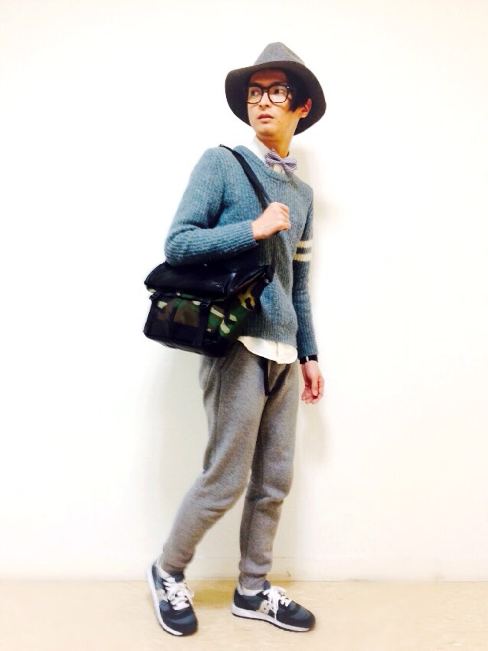 『メガネ男子2』 黒縁メガネ、蝶ネクタイ、ツバ広ハット 盛りだくさんでかなりキャラ濃くなってます。 以前に書いてあった「ちょっと色使ってカジュアルに…」って流れからこれを撮ったんですが、、、 あんまり色を使った感が出てないですよね(笑) ん〜 やっぱり色使いはさっぱりが好き(笑)