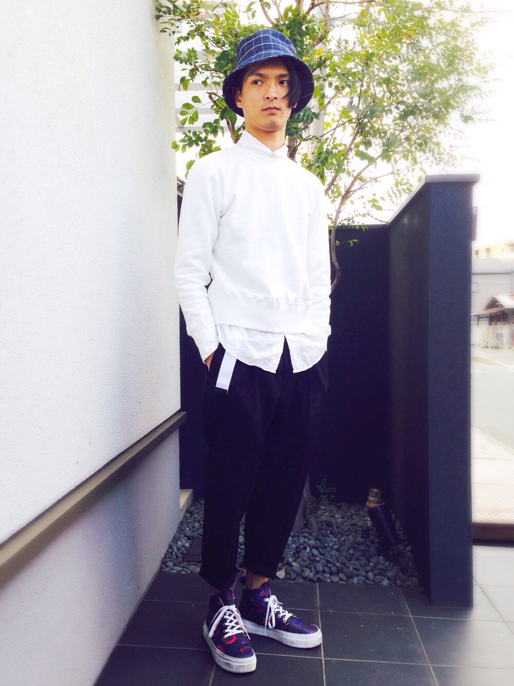 『無地スウェットと玄関』 白、黒、紺のシンプルコーデ。 JUNRed、LEJUN、Adam et Rope'、BIOTOPとミックスしてみました。 たまにはこうやって自社ブランドでコーディネートするのも良いですね。 そして、最近撮影を外でもするようになったので、その流れで自宅撮影。 WEAR楽しいから普通に撮りたいと思う。 どんどん新しいことやっていきたいな〜