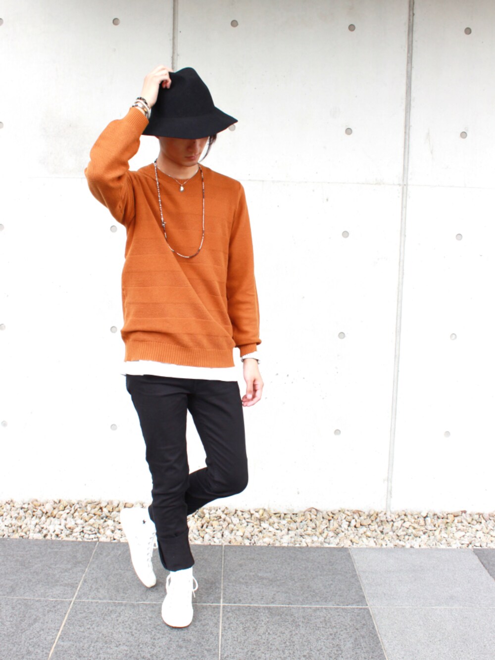 『D-fes vol.2』 久しぶりのフェス参加です! 「インパクトアイテム」という事だったので、トップスの色勝負でインパクトってみました! ありかな?なしかな?^^; D-sukeさん、宜しくお願いします! ちなみに、、、 『てっぱんポーズf…』 ハットを抑えるポージングをするとTETUさんを連想しますw さて、今回もスキニー! ほんとスキニーばっかですねw でも好きなんで大目にみてください^^ コーディネートの話。 トップスをオレンジがかったブラウン(ゴールドブラウン)で流行りの色にして、他はベーシックに黒と白のみでコーデ。 色が引き立つので、こういう着方はよくするんです。 色合わせを悩まずにコーディネートできるので、楽でわかりやすくてオシャレで良いですよー! 参考になればと思います♪