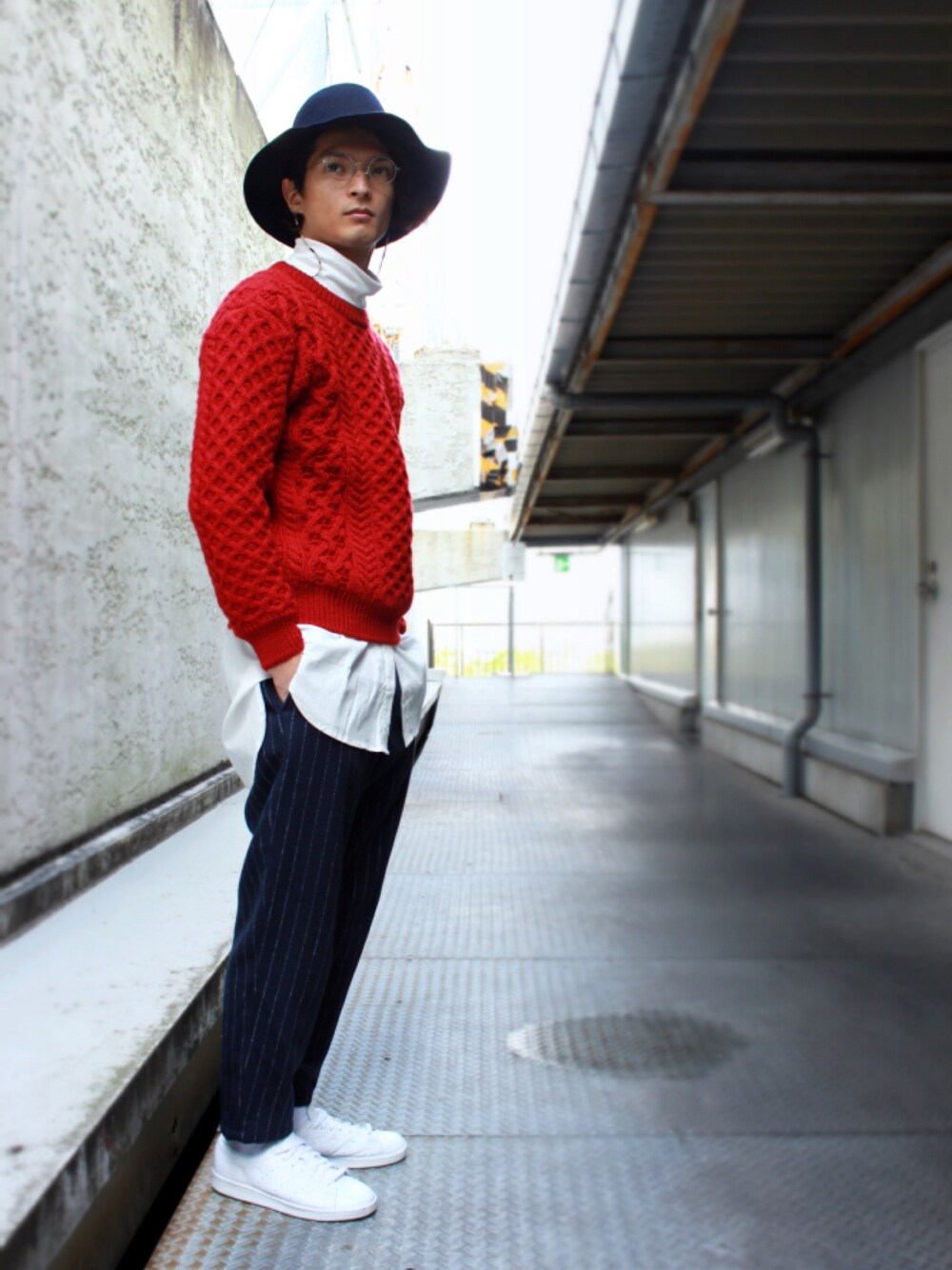 『クリスマスコーデ』 おはようございます! 前回の投稿で「冬らしい明るさ」とか冒頭に言ってましたが、あれPM2.5のせいらしいです。。。 やられた。 勘違いや。 恥ずかしい。 今日もそんなPM2.5が降り注ぐ中出勤でございます。 さて、コーディネートの話。 赤です。 赤を使ってみました。 自分ではあまり選ぶことのない色なんですが、この季節になるとちょっと着たい気持ちが出てくるんですよね。 12月。クリスマス。サンタ? まぁ、そんな空気が漂う中、服装でもそういうのがあっていいかなと。 ちなみに、変わった着方をしています。 タートルネックのインナーにロング丈のノーカラーシャツを着て、その上から赤のニットを着ています。 ダブルレイヤードという感じでしょうか? 重ね着した分、暖かさもあって結構いい感じです。 あとは、丸メガネとつば広ハットで飾り付けすればクリスマスコーデの完成です。 みなさんも赤や緑、白なんかを取り入れてクリスマスコーデしてみてください✨