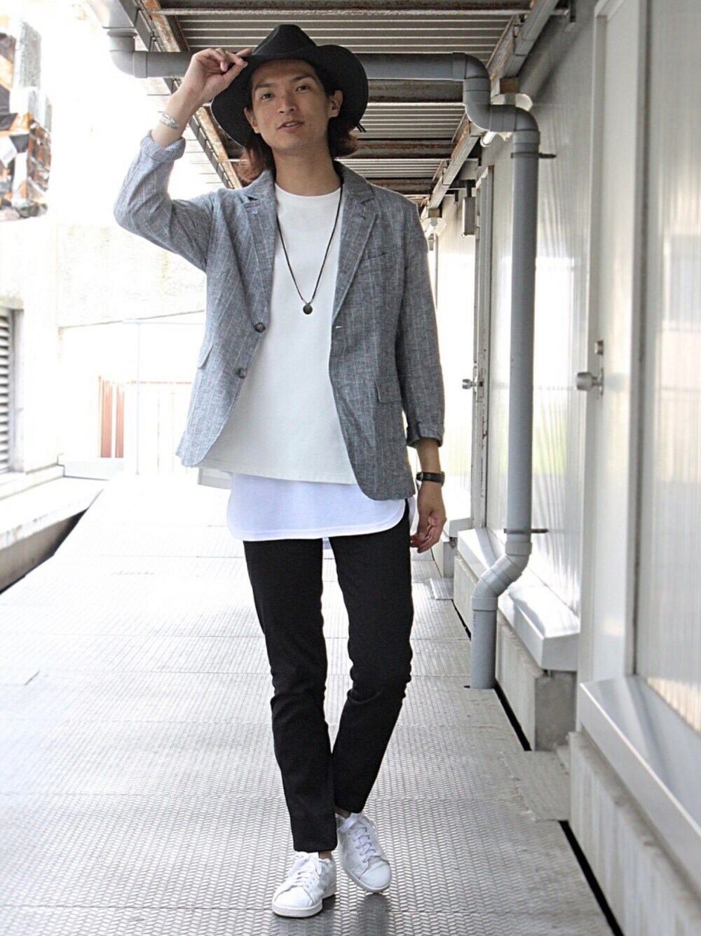 『アメノススメ』 いつも雨が降ると出かけたくなくなるんですよね、、、(元々インドア派なんですけどね(笑) ヤマノススメならぬアメノススメってな話があれば今日みたいな日も楽しく過ごせるのかな?と思う今朝です。 ちなみに、ヤマノススメはまだ見たこと無いです。 いつかまとめて見たいな。 さて、服の話ですがセットアップジャケットを使ったレイヤードコーデです。 ちょっと大人コーデ的な雰囲気が出ていれば良いんですけど、どうでしょうか?? あと、何故か正面向いてますが気にしないでください。