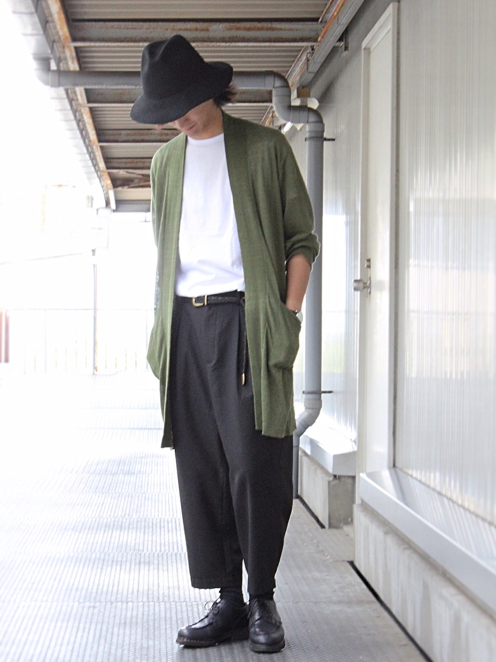 KURE.のハット「ツバヒロフェルトハット」を使ったコーディネート