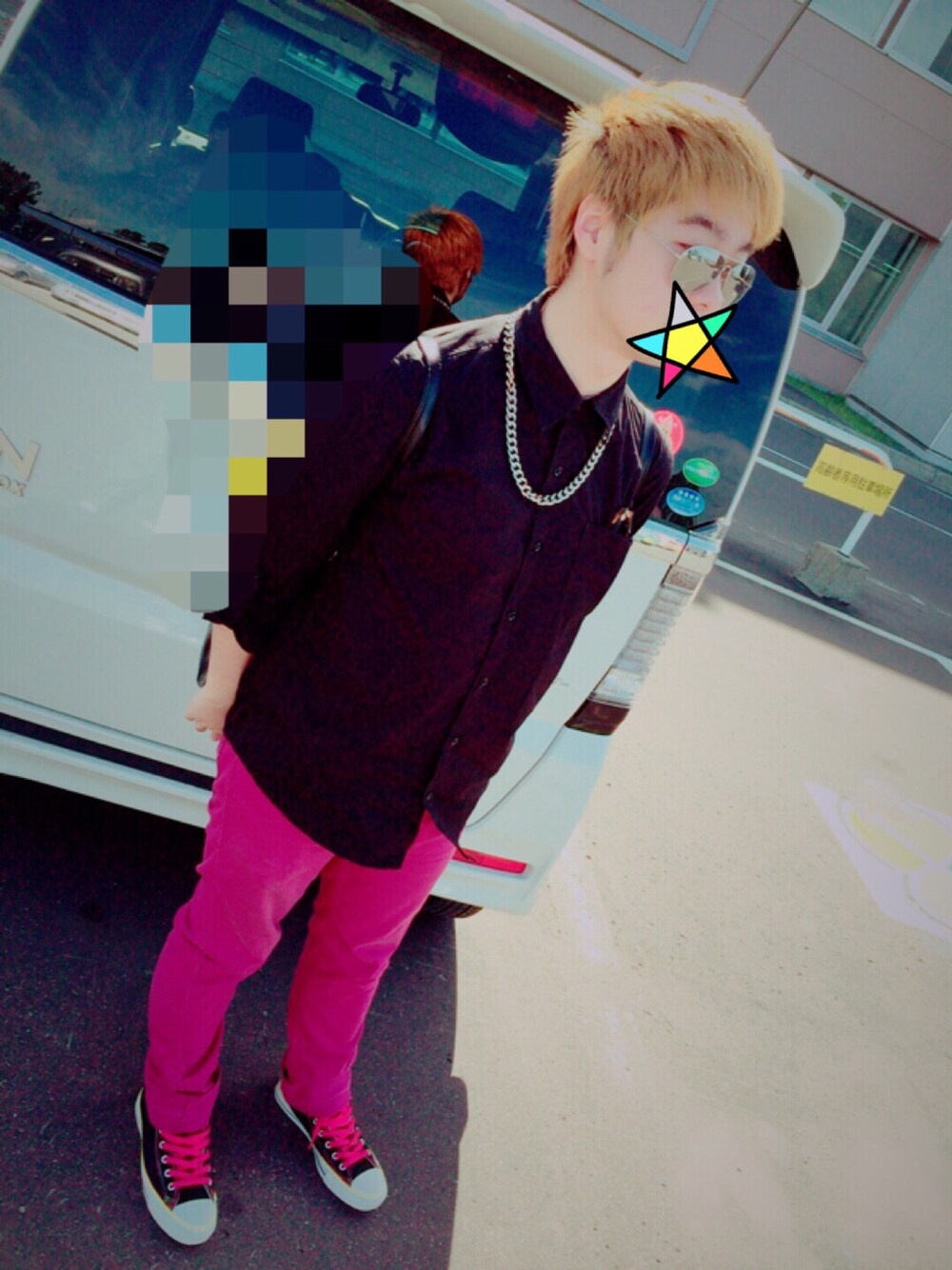 足が短いのは触らないでください。笑 ブランドもサングラス以外何もわからず笑 パンツがボルドーっぽいのかな?ワインレッド?みたいな! あとネックレスが好き!!