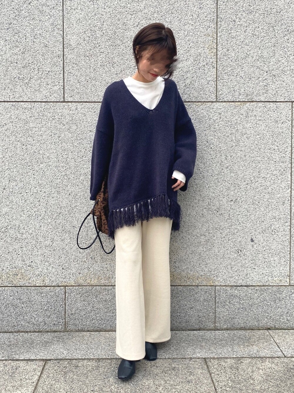 りょうのニット/セーター「主役級ニット アルパカ混ルーズフリンジニット(長袖)」を使ったコーディネート