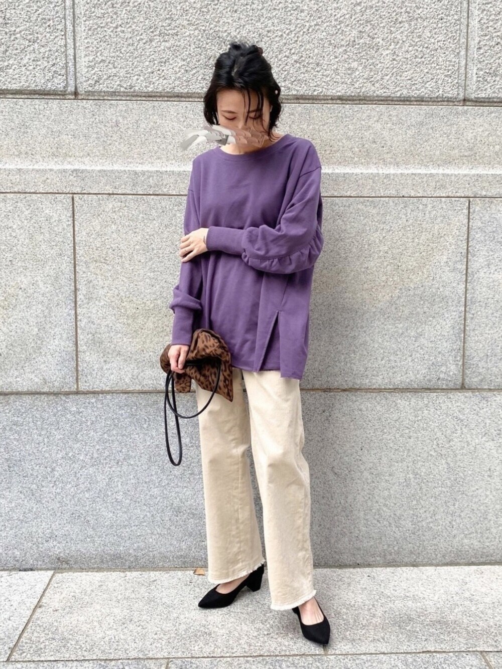 りょうのTシャツ/カットソー「【女性らしく着れる】ギャザースリーブ裏毛プルオーバー(ミドル丈)」を使ったコーディネート