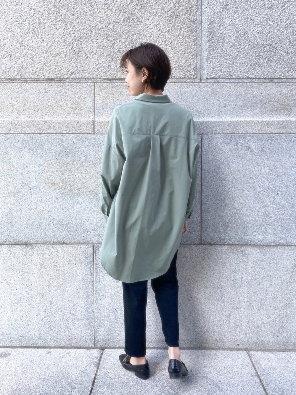りょうのシャツ/ブラウス「腰まわりを隠せる安心のミドル丈 パール釦Wポケットシャツ」を使ったコーディネート
