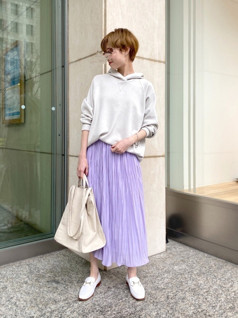 おはようございます☀ いつも見てくださりありがとうございます😭✨ 大人カジュアルなフーディ×スカートのコーディネートです! 鮮やかなパープルカラーが春らしさ満点💯 実はウエスト総ゴムで楽ちんすぎるんです…♡ 軽い着心地で、初夏くらいまで使えますよー!
