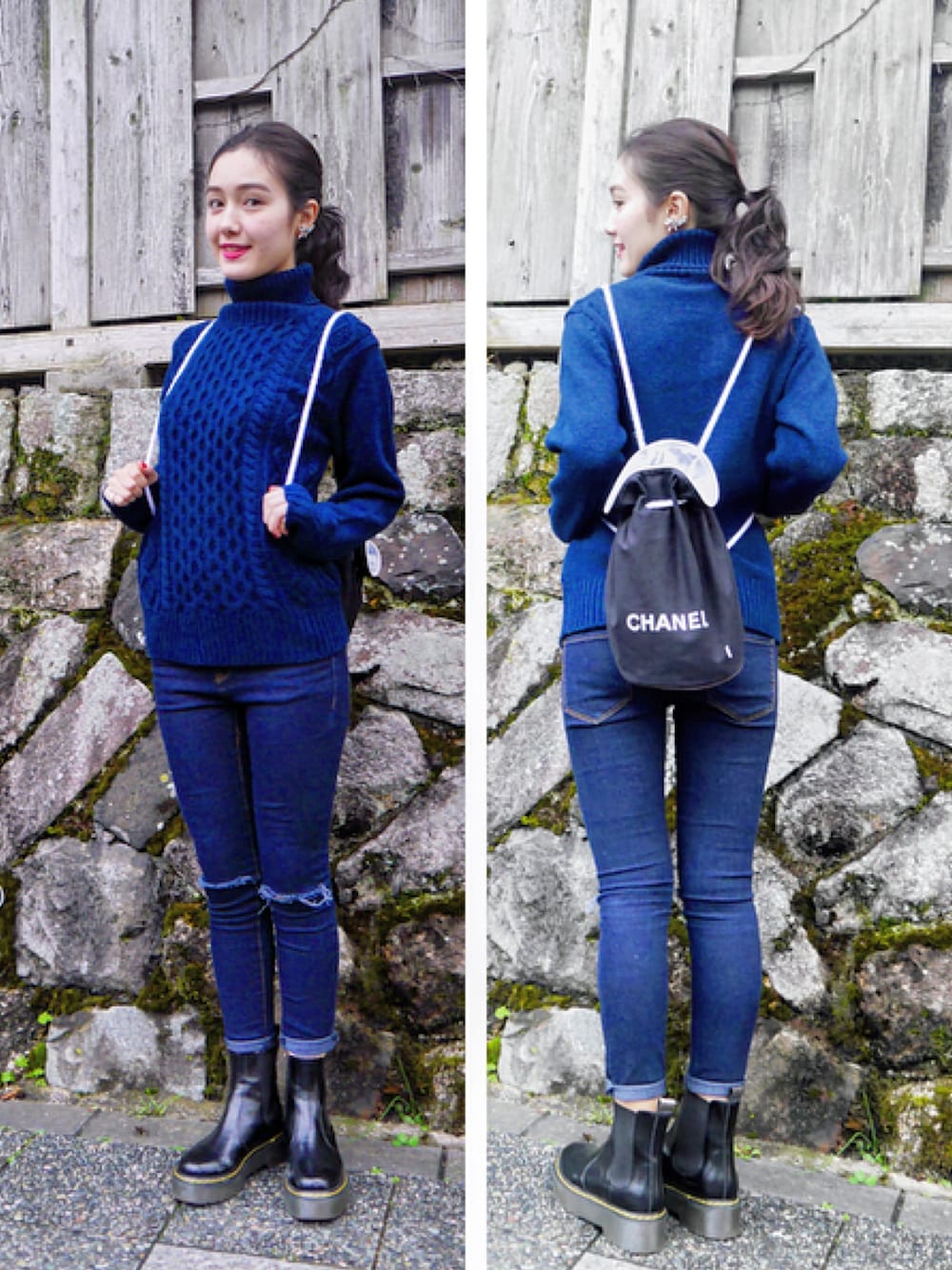 トップス GU パンツ forever21 ブーツ OHOTORO バッグ CHANEL ピアス forever21