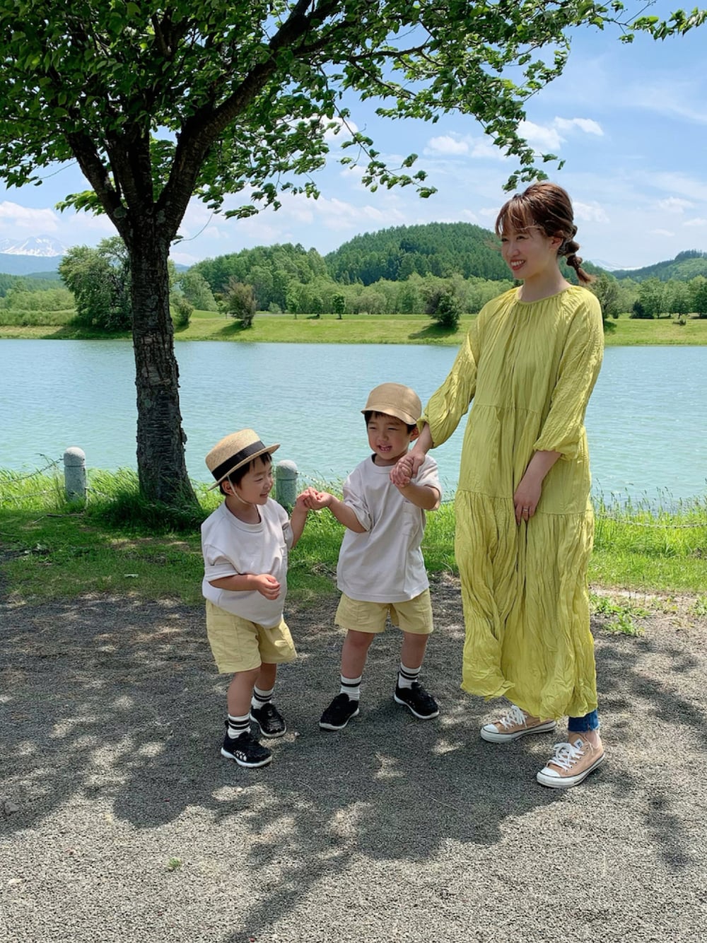 黄色のワンピースと黄色のパンツ Instagram⇨ぁぁra.2mama