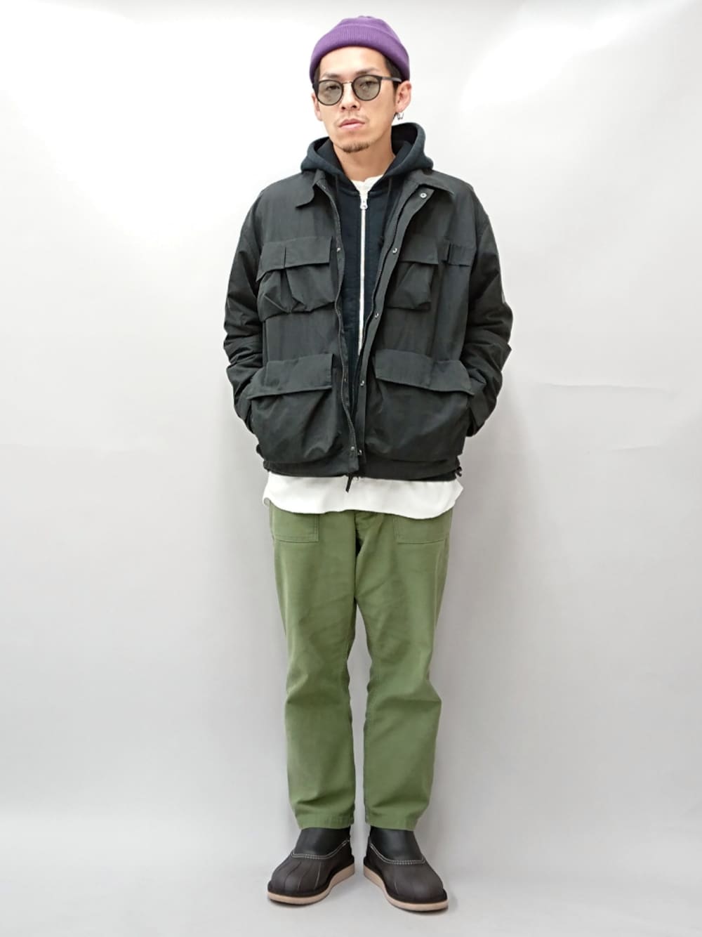 YANCHAのニットキャップ/ビーニー「Mr.COVER / ミスターカバー / 抗菌防臭 日本製 ロールニットキャップ / コットン ニットワッチ」を使ったコーディネート