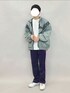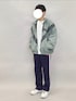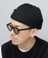 YANCHAのニットキャップ/ビーニー「日本製 抗菌防臭 オーガニックコットン 矢振り編み×畔編み 切り替え編み ワイドロールニットキャップ」を使ったコーディネート