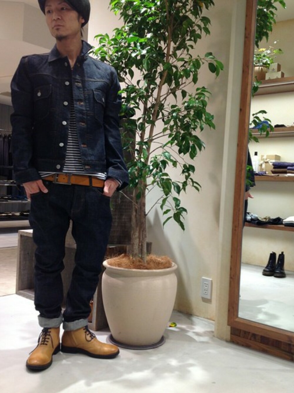 noroのデニムジャケット「セルヴィッジデニムトラッカー」を使ったコーディネート