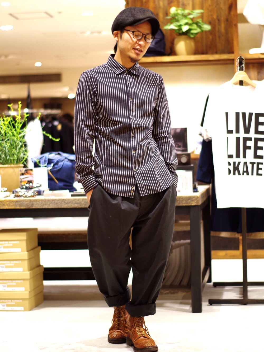 秋ですね フランネルシャツがなければ、自分はこのシャツが今回は当たりでした パンツはゾゾに載っていないKATHARINE E HAMNETTのトラウザース 当ブランドの別注トリッカーズモールトンで、キャスケットにメガネ サスペンダーが欲しいところですね このシャツは一番上まで釦はとめて、が自分的には良い様に見えます。 黒シャツ自体がワイルドなイメージがあるので、エロくないイメージで着た方が街中では馴染みそうです たまにはコスプレライクに着合わせを楽しむのも、大人コーデと言えるのではないでしょうか?