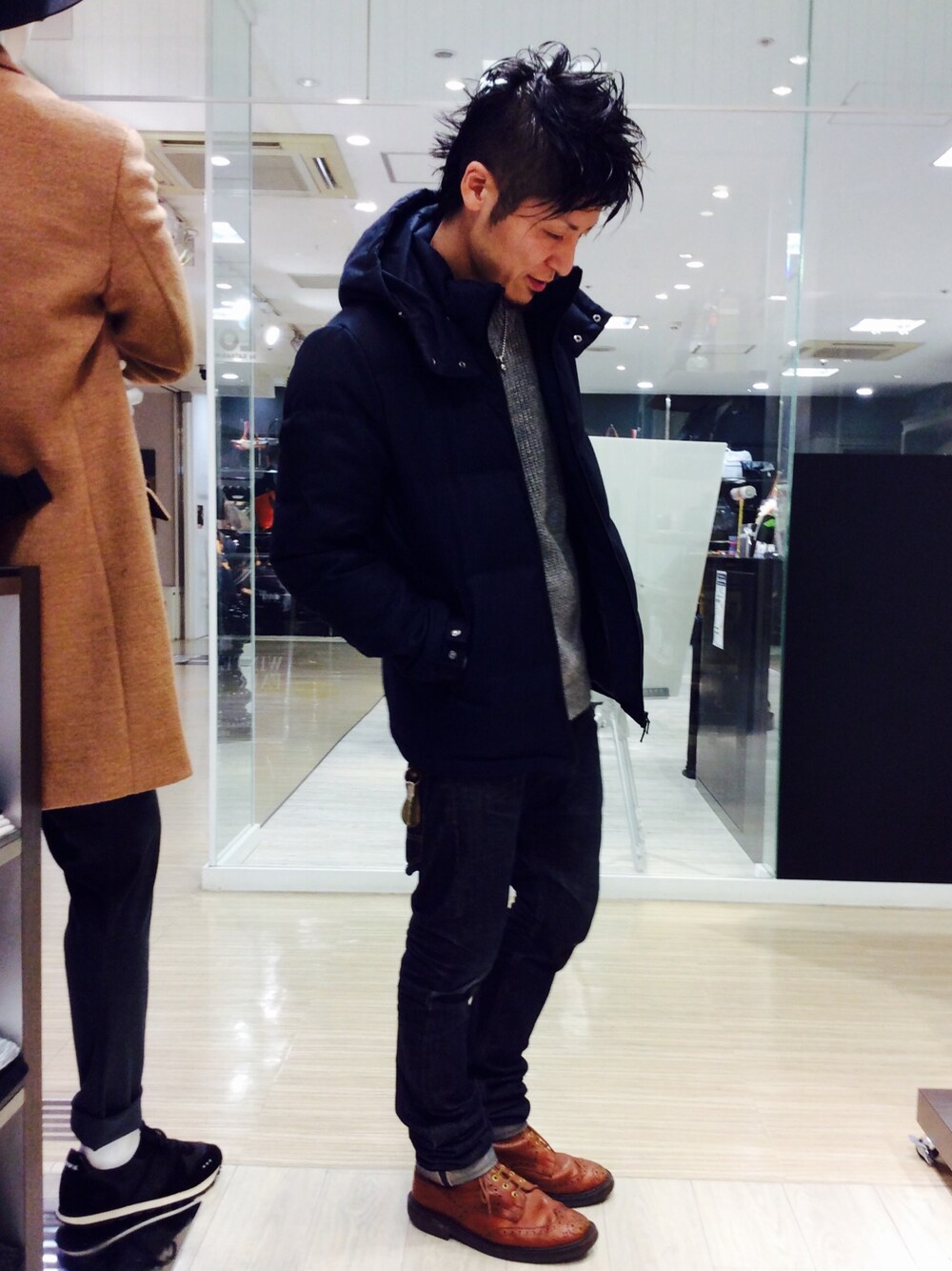 キャサリンハムネットのセカンドライン、ハムネットのダウンをメインに据えたコーディネートです 冬に向けて、暖かなモノは必須。シルエット、カラー、値段の三拍子そろったアイテムです シンプル且つ楽ちん、田舎のあぜ道を歩いても、雪が降ってきても、自転車に乗って冷たい風が前方から容赦なく顔面を襲ってきても大丈夫である事は(笑)、田舎暮らしの自分にとって非常に重要です 無駄なブランドロゴは付いてませんのでお気兼ねなく永―く使っていただけます アームホールが絶妙な大きさにしてあるので、〇シュランさんの〇イヤマンの様なフォルムにならないのもポイントですね