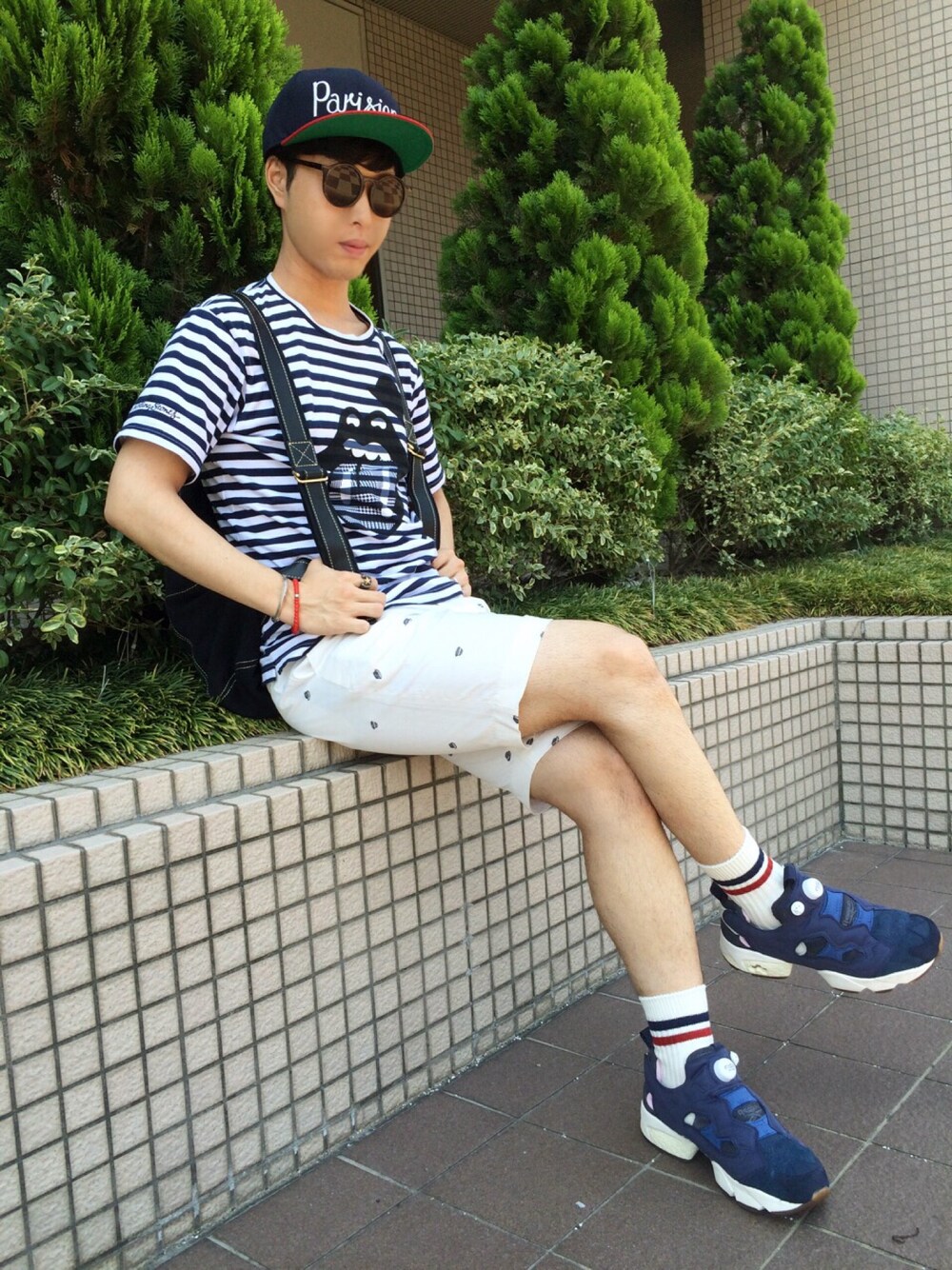 こんちわっす✨ 今日は暑くて今年初ショーツ出しちゃいました!! このショーツただのドット柄じゃなくてハットの形しているんです🎩 タケオならではの商品💕 やっぱトリコロールカラー好きなんでよね〜(ノ∀`*) 最近、キツネのキャップ使い勝手が良過ぎて乱用してますwwww