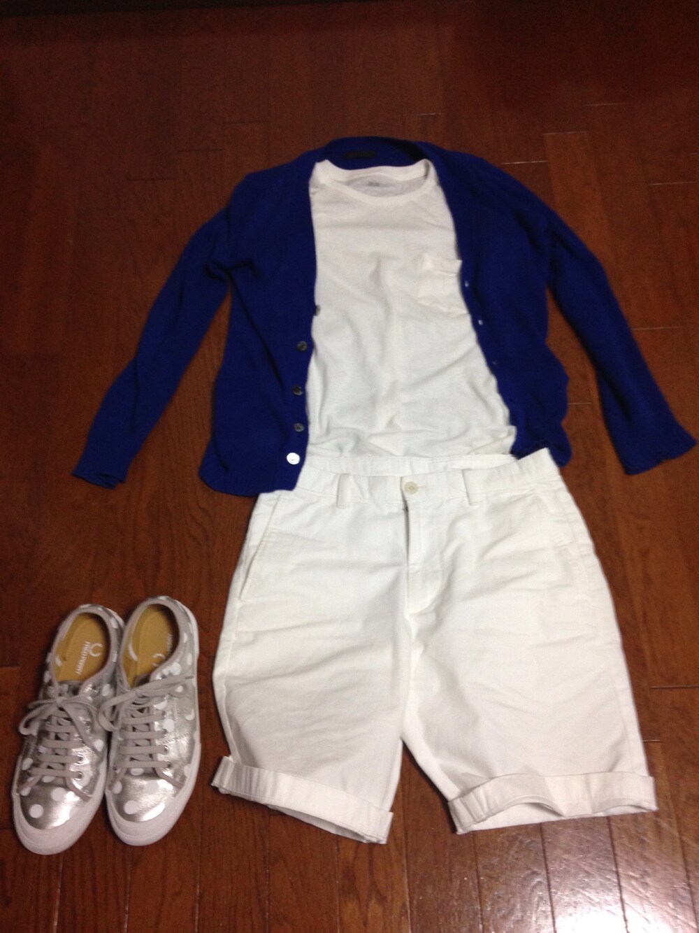 上下、白に初挑戦・・しましたが 青のカーディガンで緩和( ̄▽ ̄) さすがに全身、白はおれには似合わない(つД`)ノ そして 靴も白が良かったけど 白もってないやー(#^.^#)