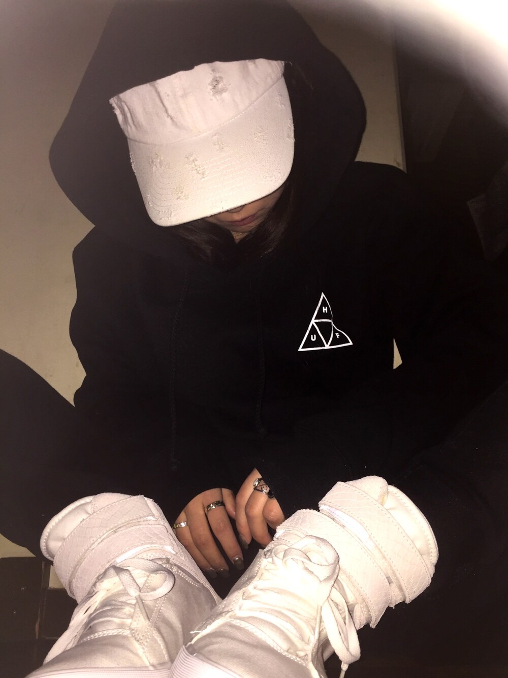 先日SUPRA3足買いました👟👟 1番形が嫌いなSOCIETYII に合わせたコーデ お気に入りのHUFのトレーナーは裏起毛だからあったかい〜