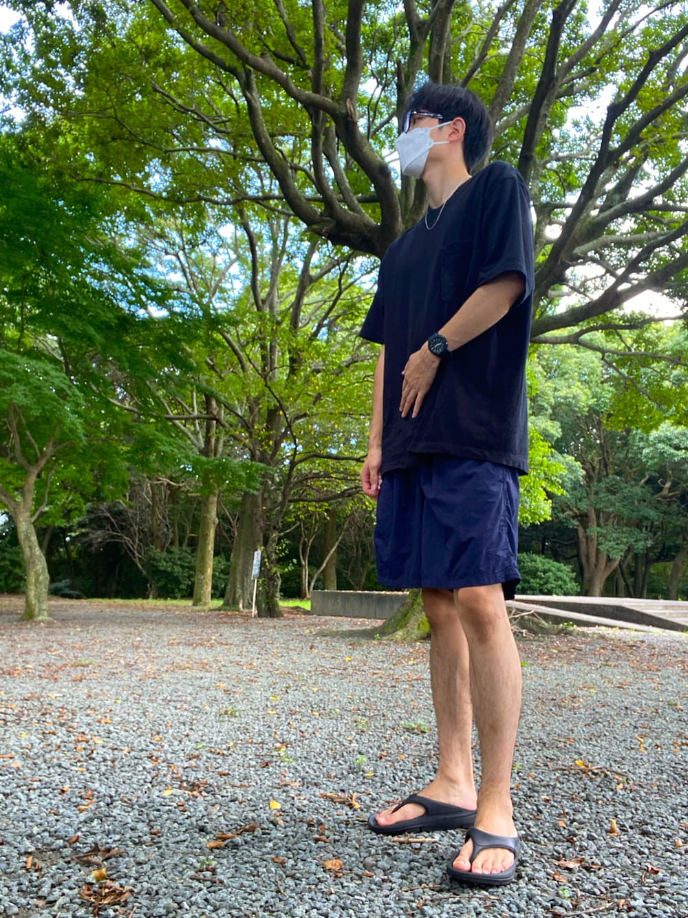 黒とネイビーでアイテムはアウトドアだけど大人な色合い