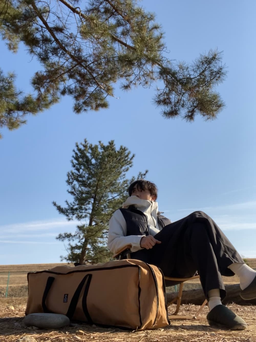 キャンプに行ってきました。 ノースフェイスのアノラックパーカーは、防水、防風、のGORE-TEXで、その上にユニクロのウルトラダウンベストを着る事で、気候の変化に耐えれる着こなしになっています!