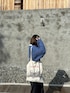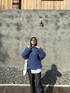 (撮影時2月) ニットとシャツのレイヤードスタイリング! 落ち着いたブルーと暗めのグレーに、サシ色で"白"を入れて、重たくならないようにしました!➰