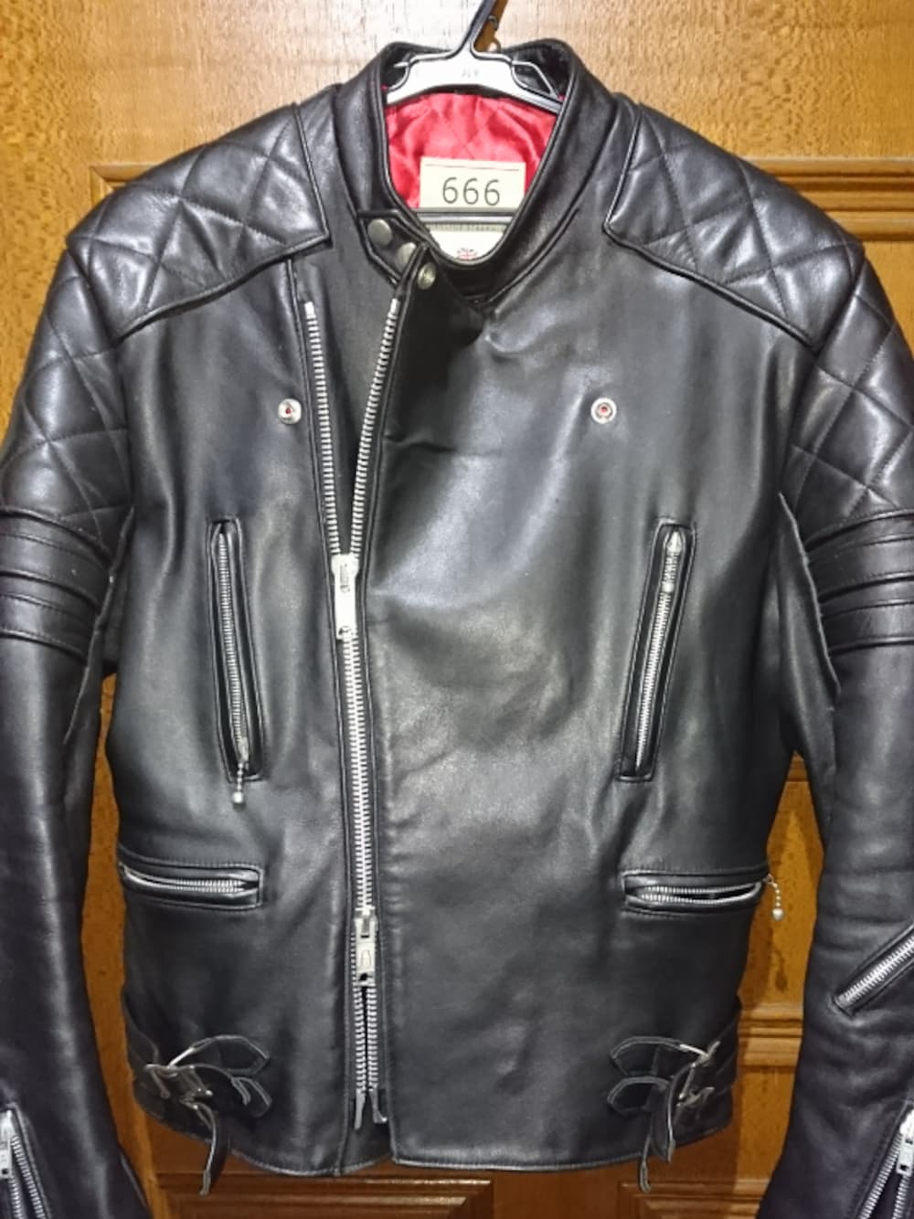 ブラック系のライダースジャケットを着用したメンズの冬コーディネートの1枚目の写真
