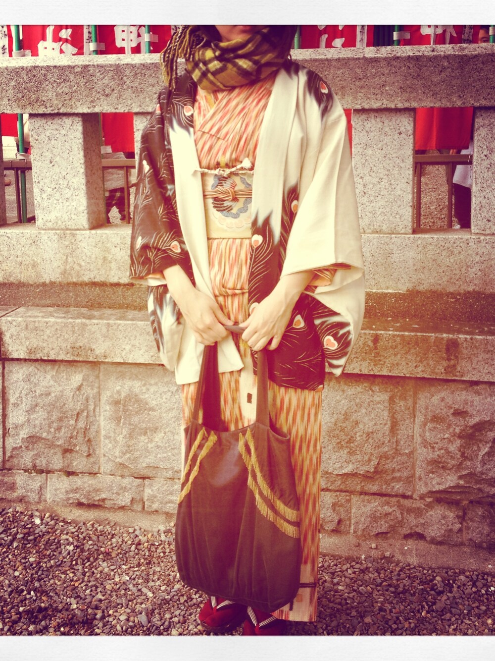 友達とアンティーク着物でお出かけ〜♪* 腕がにょきっとですぎ笑