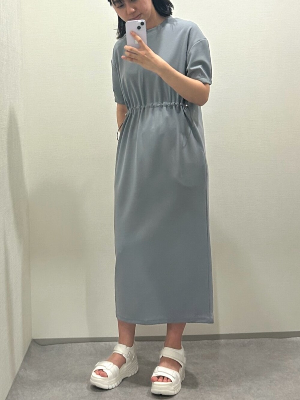 グレーのワンピースでラフにお出かけ👗 旅行などにもおすすめです! 水色が買ったグレーでブルベの方におすすめです〜!